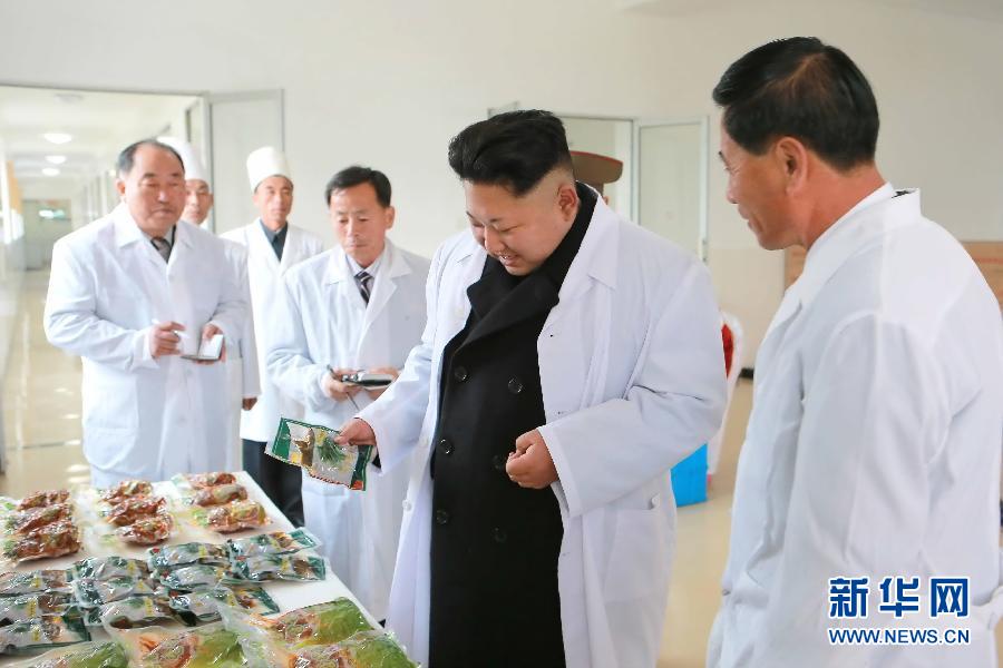 朝中社11月17日提供的照片显示,朝鲜最高领导人金正恩(右二)视察朝鲜人民军第534部队所属综合食品加工厂。朝鲜最高领导人金正恩日前视 察了朝鲜人民军第534部队所属综合食品加工厂。金正恩察看基础副食品车间、玉米加工车间、碾米车间、蔬菜加工车间和方便米饭车间,具体了解了其现代化情 况。新华社/朝中社