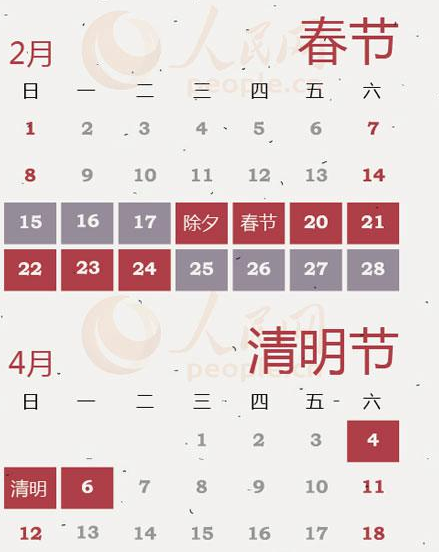 三、清明节:4月5日放假,4月6日(星期一)补休。